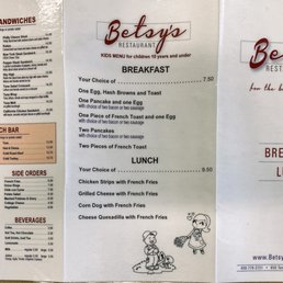 Betsy’s Restaurant Menu