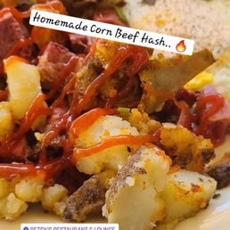 I have a lifelong competition with my brother to find the best chicken fried steak on the planet. When a friend told me that Betsy's had the best one he ever had I had to try it. The opportunity came when we found ourselves in Morgan Hill shopping at our favorite produce stands and wineries. I was told that my favorite, Chicken Fried Steak, was a hand tenderized New York steak topped with house made gravy. So many restaurants serve what appears to be a frozen breaded product and a pasty premade gravy. Scanning the menu I was also surprised to find the offered my wife's favorite house made corned beef hash. I ordered both. My wife chose hash brown potatoes and I chose the country potatoes. Both were good choices. My Chicken Fried Steak and gravy was as good as my home cooked version. My wife's corned beef hash plate is her new favorite. We will be back. One thing worth noting is that they close at 2PM. We got there at 1:30 PM but they we were not rushed when our food got there close to closing time.
